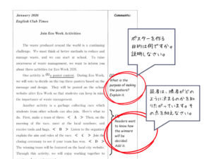 自分たちが作る「オンラインニュースレター」を、顧問の先生に添削してもらうという流れです 。