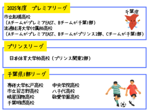 2025年度、千葉県1部/プリンス2部/プリンス1部/プレミアに属している「千葉県の高校」は下記の10校です。