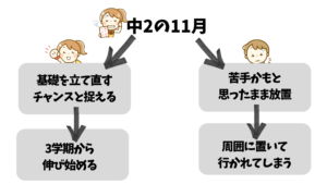 実は、中2の11月は多くの生徒が一番伸び悩む時期なんです。
