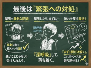 緊張したら、「深呼吸して、まず1問だけ解く」。