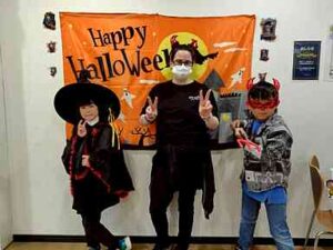 かぼちゃ団子、お化け、魔法使いやプリンセス、悪魔、恐竜など、カラフルなコスチュームで笑顔があふれました。