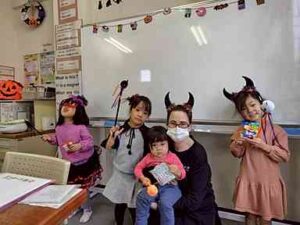 子どもたちも先生たちも、思い思いの仮装をして教室が一気ににぎやかに。