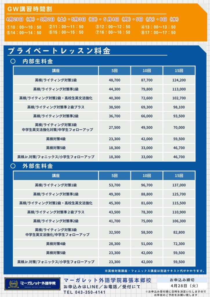 🖊GW講習(英検直前講習)開催のお知らせ🖊
