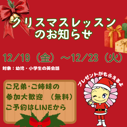 マーガレット外語学院ではクリスマスにちなんだゲームや会話を楽しむクリスマスレッスンを開催します♪